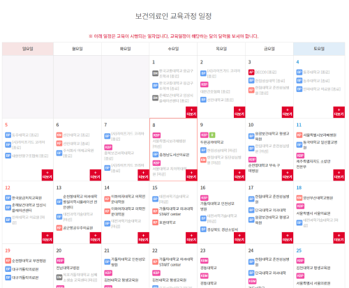 해당 교육일자 중 [한국응급처치교육원] 클릭 후 교육안내문 맨 하단의 [교육신청] 버튼 클릭