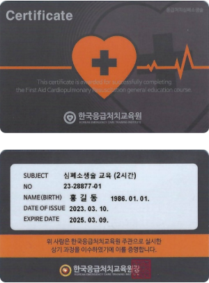 ET-P과정 수료 (국제 EFR자격 + BLS-P과정)8시간