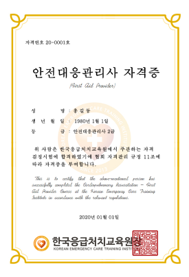 1) 상기 자격은 자격기본법 규정에 따라 등록한 민간자격으로, 국가로부터 인정받은 공인자격이 아닙니다.